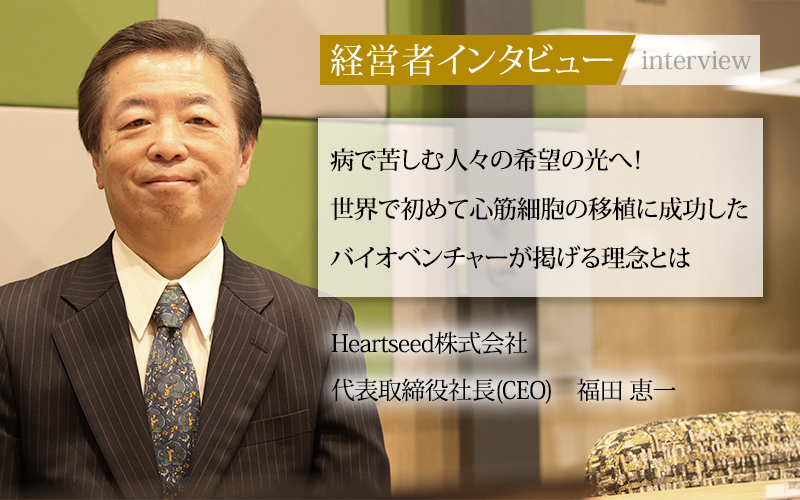 福田恵一/慶應義塾大学医学部を卒業後、心不全の新しい治療法を開発するため、ハーバード大学とミシガン大学で研鑽を積む。1999年に世界で初めて骨髄間葉系幹細胞から心筋細胞の作製に成功、その後、ヒトES細胞やiPS細胞へと対象を変えて心筋細胞の分化誘導技術を確立。実用化に向けて多くの新技術を開発し、特許化してきた。2015年にHeartseed株式会社を設立し、代表取締役社長に就任。2024年に東京証券取引所グロース市場に上場し、企業経営者として心筋再生医療の実現に向けて邁進している。
