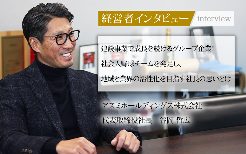 谷岡哲広/33歳で独立し、前身である関西タクト株式会社を設立。総合建設会社として港湾工事や公共工事を手掛け事業を拡大。2019年に鉄道関連工事の尾藤建設株式会社を買収。2020年に建設業界の若手人材不足という課題解決に向け社会人野球チームアスミビルダーズを設立。2022年にコンクリート二次製品の製造販売の富士コン株式会社を買収。同年、アスミホールディングスを設立し、2024年に東京証券取引所 TOKYO PRO Marketに上場。