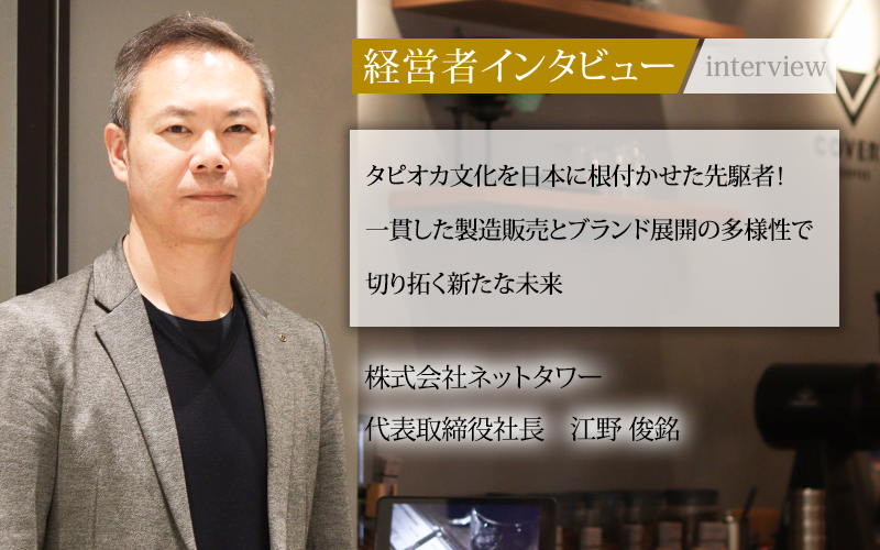 株式会社ネットタワーの代表取締役社長である江野俊銘氏は、台湾出身の留学生として来日し、日本にタピオカ文化を根付かせるという挑戦を成功させた。今回は、江野社長に起業のきっかけ、事業成長の秘訣、そして今後の展望について話をうかがった。