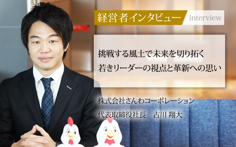 古川翔大/1988年、愛知県出身。慶應義塾大学経済学部卒業後、株式会社キーエンスに入社し最先端の営業手法を学んだ後、2014年にさんわコーポレーションに入社。2016年に取締役執行役員に就任。2017年には、さんわグループ初となる海外事業として台灣鳥三和有限公司を設立し、代表取締役社長に就任。2020年にさんわコーポレーションの代表取締役に就任。