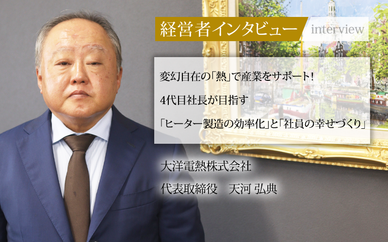 1939年創業の大洋電熱株式会社は、東京都足立区に本社工場を置く、工業用ヒーターの製造・販売を手がけてきたメーカーだ。今回は同社の4代目の代表取締役である天河弘典氏に、就任までの流れや企業の強み、今後の展望についてうかがった。