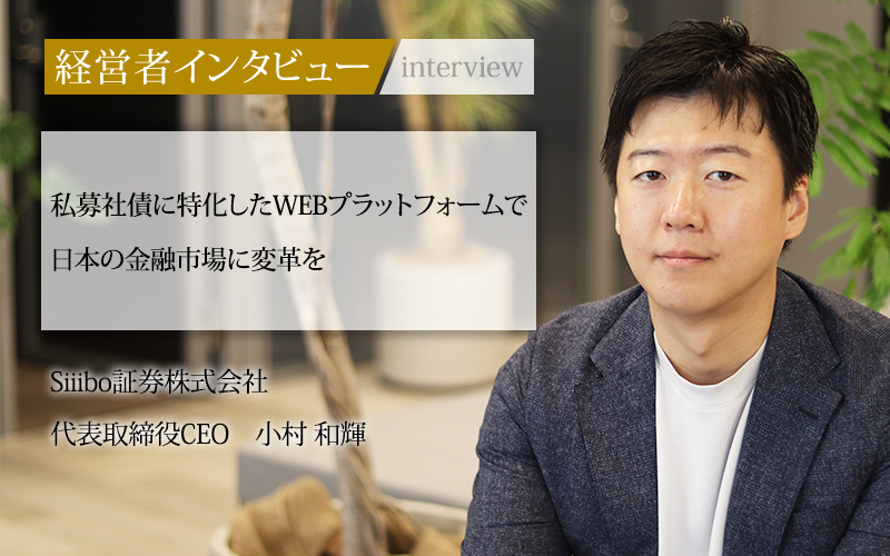 この少人数私募社債に着目し、個人投資家がオンラインで購入することを可能にしたのが、Siiibo証券株式会社だ。同社の代表取締役CEOである小村和輝氏に、その設立の背景と未来への想いをうかがった。