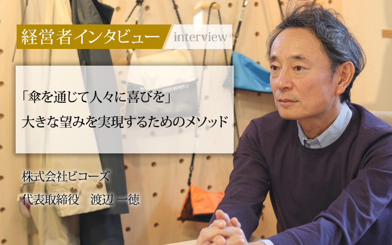 洋傘の企画と卸売を手がける株式会社ビコーズの代表取締役である渡辺一徳氏は、デザインや環境配慮を意識した傘を開発し、世に送り出すことで、人々に前向きな気持ちを届けたいという強いこだわりを持っている。今回は、渡辺氏に傘開発にかける思いや販売戦略、今後の展望についてお話をうかがった。