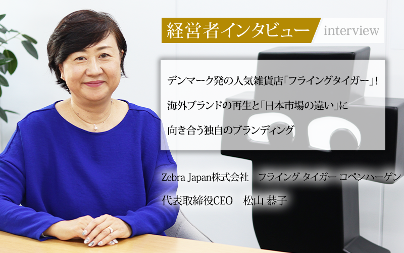 2012年に設立されたZebra Japan株式会社。デンマーク発の北欧雑貨ブランド、「Flying Tiger Copenhagen(フライング タイガー コペンハーゲン/以降「フライングタイガー」)」を日本国内で展開する企業だ。思わず足を止めてしまうカラフルな店内には、毎月多数の新商品が登場する。代表取締役CEOの松山恭子氏に、就任の経緯や日本ならではの戦略、今後の展望をうかがった。
