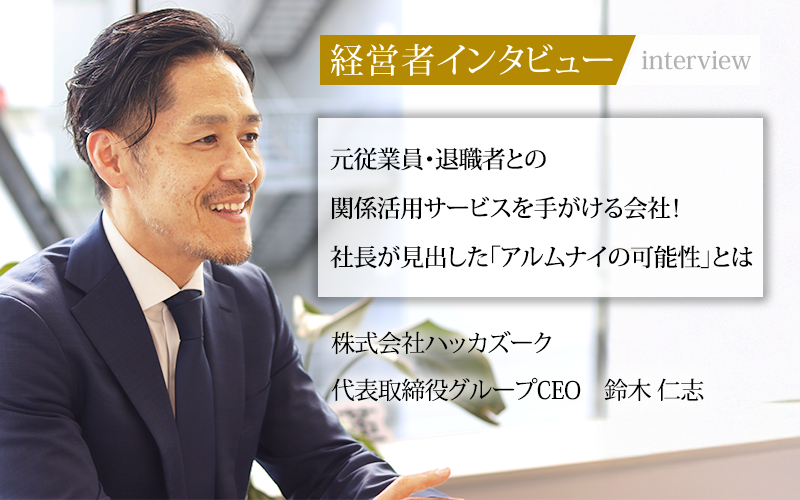 このアルムナイの可能性をいち早く見出し、事業として手がけているのが株式会社ハッカズークだ。同社の代表取締役グループCEO、鈴木仁志氏は、アルムナイ採用がまだ一般的ではない頃から、この領域に力を入れて取り組んできた。今回、同氏が考えるアルムナイのビジネスとしての可能性に迫る。