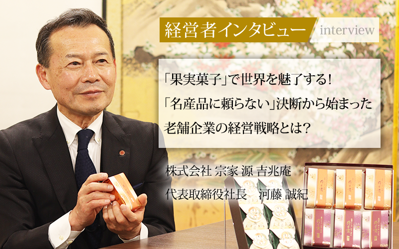 1946年に創業した和菓子メーカーながら、時代の変化に柔軟に対応し続けてきた株式会社 宗家 源 吉兆庵。同社は四季折々の果実を活かした菓子づくりを得意とし、全国に8グループ約450店舗を展開している。
