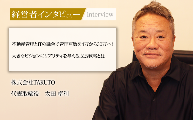1998年の創業以来、不動産管理業界で成長を続けている株式会社TAKUTO。同社はリーマン・ショックによる逆境を転機に変え、不動産管理とITのシナジーで、存在感を発揮している。