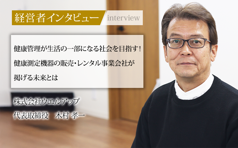 知り合いと起業したことがきっかけとなり、ヘルスケア事業に注力してきた木村社長。「自分で自分の健康を守ることを当たり前にしたい」という言葉からも、事業を通して国民の健康意識を向上させたいという思いが伝わってきた。株式会社ウエルアップは人々が最期まで健康に過ごせるよう、今後も健康管理の大切さを世の中に広めていくだろう。