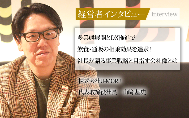 飲食店経営や食品販売を手がける株式会社U-MOREは、独自の強みを巧みに生かしながら、従来のセオリーにとらわれない、柔軟な経営方針を掲げている。今回は、代表取締役社長の山﨑氏に、同社の事業の強みと、それを支える経営戦略についてお話をうかがった。