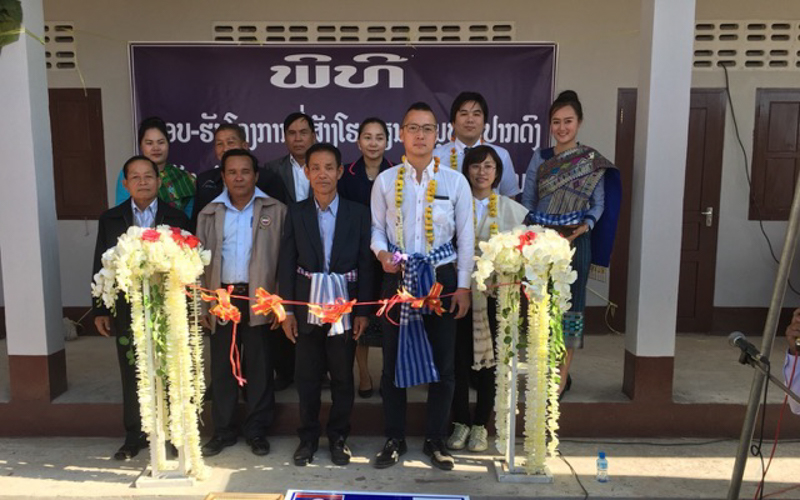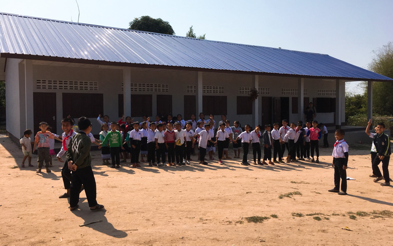 社会貢献活動の一環としてNPO団体と協力し、ラオスの首都ビエンチャンから悪路で6時間のタケークという場所に幼稚園を設立しました。もとは小学校しかなくて教員室を使って幼稚生の年長さんだけを受け入れていましたが、ケーメックスONE幼稚園のおかげで、年少さん達から通えて、教員室も先生が使えるようになりました。