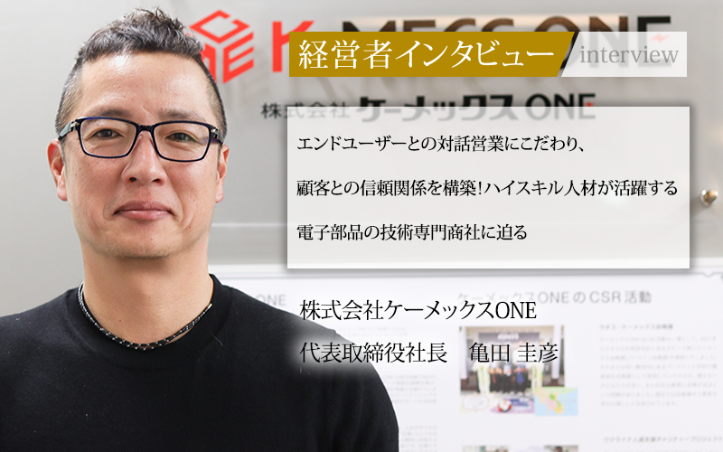 インタビュー中にユニークな話で場の雰囲気を温めてくださった亀田社長。高度なスキルが求められる同社だが、亀田社長の人望があるからこそ、社員の方々は努力を惜しまないのだと感じた。株式会社ケーメックスONEは、これからも顧客に寄り添った営業を続け、さらなる成長を遂げることだろう。