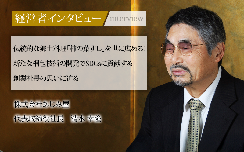 奈良県吉野地方には、保存食として塩で締めたサバと酢飯を防腐効果のある柿の葉で包む、700年の歴史を持つ伝統料理がある。その独特の風味と文化的価値に感銘を受け、この郷土料理を全国、さらには世界へ広めたいという情熱を胸に起業したのが、株式会社あじみ屋の代表取締役社長、清水幸隆氏である。