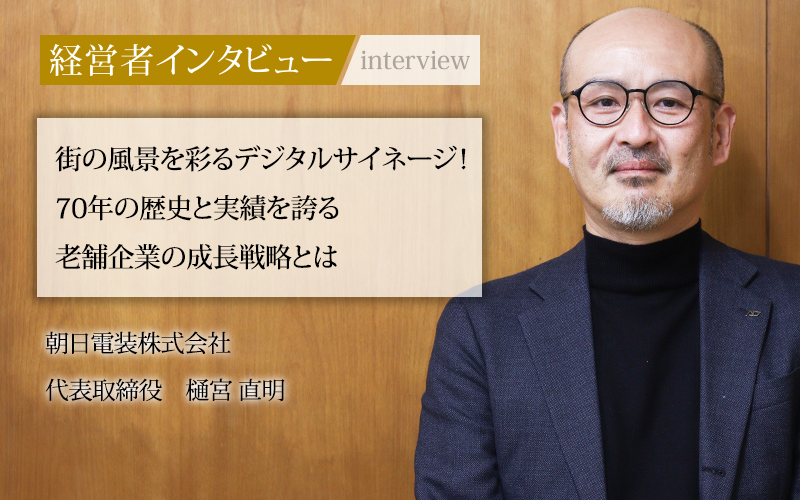 樋宮直明/1973年兵庫県生まれ。桃山学院大学卒業後、1995年に朝日電装株式会社に入社。2014年から2019年まで東京支社長を務め、2023年に代表取締役に就任。設計から製作、設置、メンテナンスまでを手がける看板製作業のリーディングカンパニーを率いる。