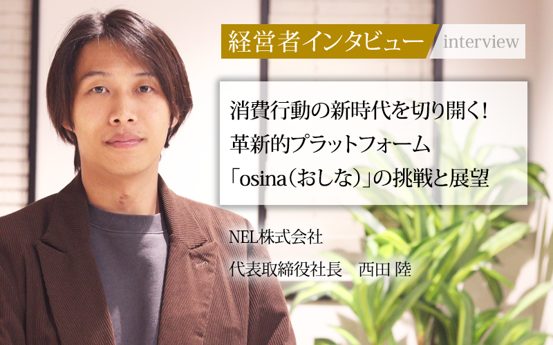 2017年に設立されたNEL株式会社は、ブランドとお客様を“推し”でつなげるプラットフォーム「osina(おしな)」をはじめとしたマーケティングソリューションを提供している企業である。「osina」は、オンラインとオフラインを融合させた新たな購買体験を提供し、消費行動に革新をもたらしている。今回は、代表取締役社長の西田陸氏に、創業の背景や「osina」の仕組み、そして今後の展望についてお話をうかがった。