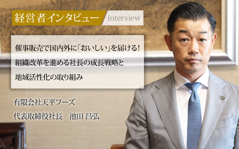 池田昌弘/1985年滋賀県高島市生まれ。大学卒業後、株式会社バルニバービに入社。4年の修業期間を経て、2011年有限会社天平フーズに入社。販売から営業・企画を行い、営業本部長、専務を経て2021年代表取締役に就任。消滅可能性都市に挙げられた地元“高島市”を創生する活動に注力している。