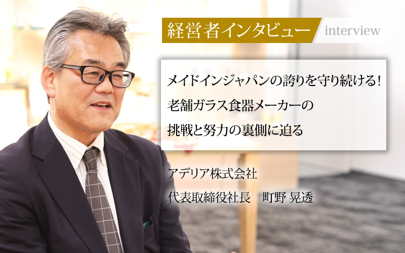 安価な輸入食器の台頭により、他社が次々とガラス食器市場から撤退を余儀なくされる中、アデリア株式会社はなぜその輝きを失うことなく存在感を保ち続けているのか。代表取締役社長の町野晃透氏に、同社のガラス食器の魅力と未来への展望を聞いた。