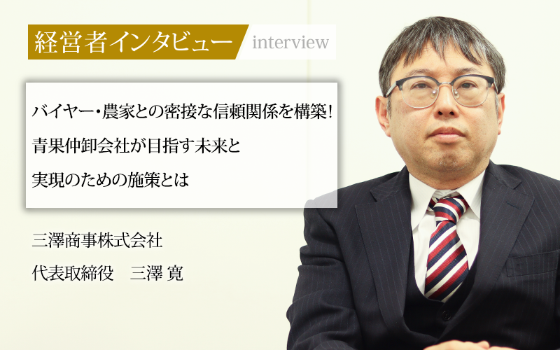 平均年齢30代後半という組織体制は、同年代が多いバイヤーとの円滑なコミュニケーションも実現しているという。今回は、青果のプロフェッショナルとして、産地との密接な関係づくりにも注力している代表取締役の三澤寛氏に話をうかがった。