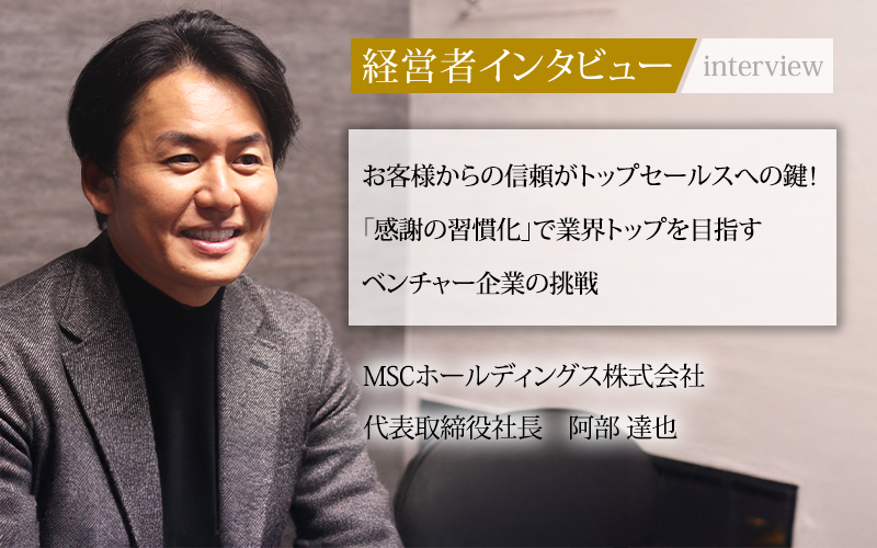 そのような事業環境下で、とりわけ急成長を遂げている企業の一つが、MSCホールディングス株式会社だ。2016年に賃貸仲介事業および売買仲介事業を開始して以来、順調に業績を伸ばしてきた。今回は、代表取締役社長の阿部達也氏に、創業までの経緯や同社の事業について詳しく話をうかがった。