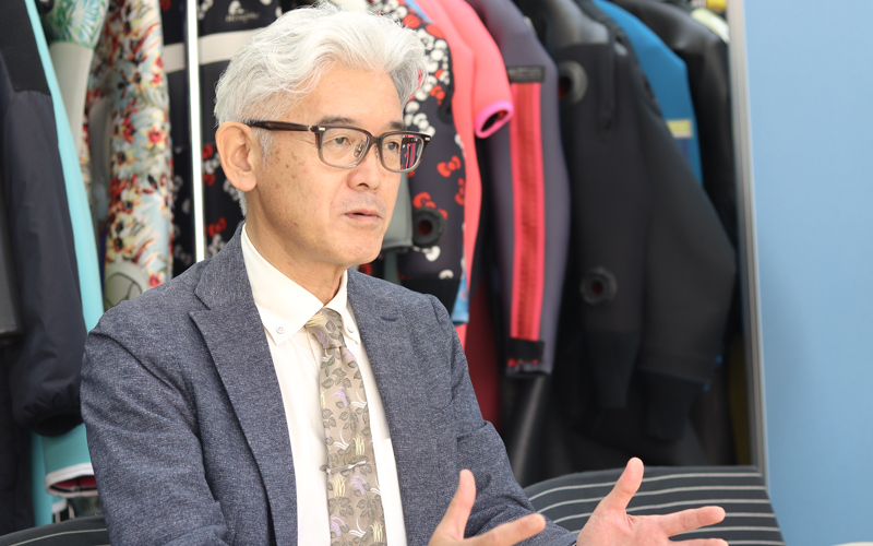 インタビュー中に「日本のウェットスーツは、ガラパゴスだと言われている」と教えてくださった高橋社長。ガラパゴス化している要因の一つが、世界のメーカーが真似できないきめ細やかな技術力にあるという。この確かな技術力を携えて、世界へと羽ばたく未来を描く社長のまなざしからは、確かな自信と希望が感じられた。