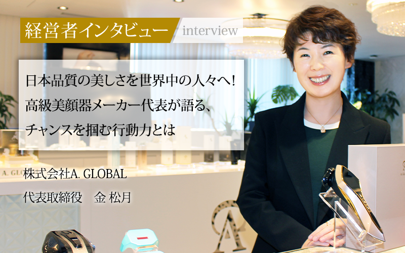 「美しくなりたい」という願いを、最先端の技術で叶える株式会社A. GLOBAL。同社はこれまで高級美顔器の開発、製造、販売を主軸に、化粧品などの開発も手がけてきた。高い技術力とデザイン性を武器に、日本国内のみならずアジアを中心とした海外市場でも急成長を遂げ、グローバルなブランド展開を加速させている。