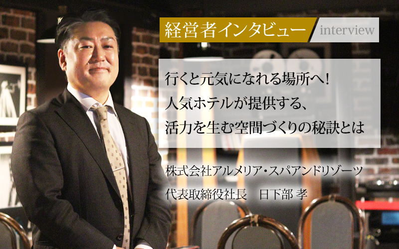日下部孝/1979年、愛知県生まれ。名古屋工業大学大学院卒業。2004年、住友理工株式会社(旧:東海ゴム工業株式会社)へ入社し、技術職として開発業務に携わる。2009年、株式会社アルメリア・スパアンドリゾーツへ入社。2024年、同社代表取締役社長に就任。