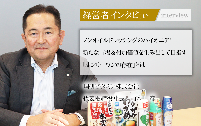 1949年に設立された理研ビタミン株式会社。自然科学の総合研究所である「理化学研究所」から、ビタミンA部門を引き継ぐ形で生まれた会社だ。ヘルシーかつ風味豊かなおいしさでロングセラーとなっているドレッシング『リケンのノンオイル 青じそ』が看板商品である。代表取締役社長の山木一彦氏に、独創的な商品が生まれる背景や活躍している人材についてうかがった。