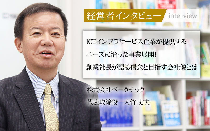 大竹丈夫/1959年生まれ。愛知県内に大学を中心に運営する学校法人に15年勤務したのち、同僚の教員と卒業生の3人で1998年にベータテックを創業し、代表取締役に就任。現在に至る。