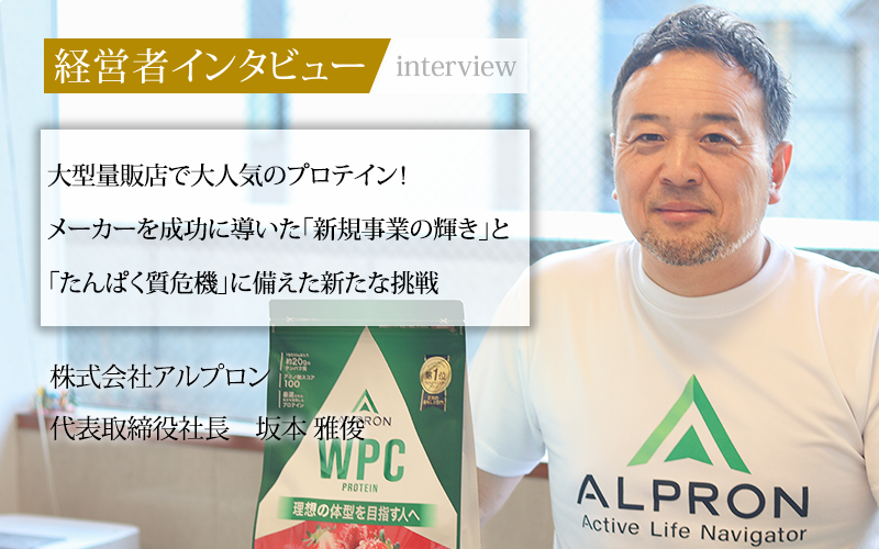 2001年に設立された株式会社アルプロン。人間の体づくりに欠かせない栄養素を補うプロテインのメーカーとして、複数の自社ブランドを展開している会社だ。代表取締役社長の坂本雅俊氏に、創業した経緯や企業としての強み、今後の展望についてうかがった。