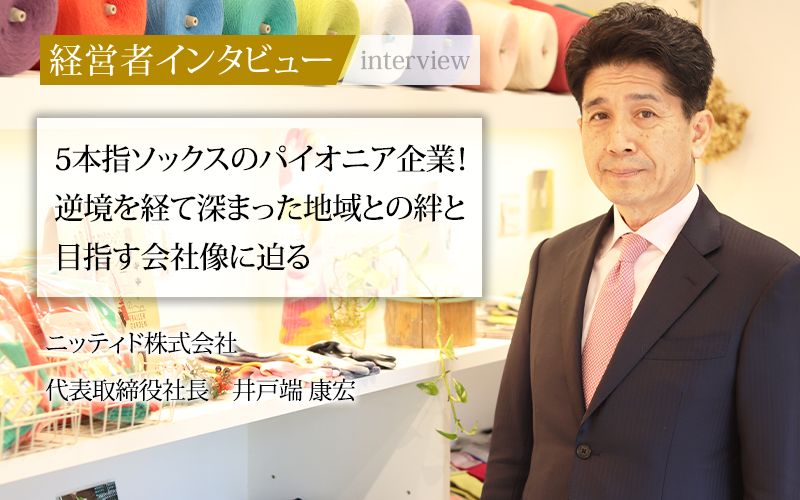 今や多くの人に知られる存在となった「5本指ソックス」は、通気性や保温性に優れ、足指でバランス良く体重を支えられることから、スポーツ選手をはじめとして愛用者が多い。この5本指ソックスの先駆けとして、40年以上にわたり消費者に製品を届け続けているニッティド株式会社は、2022年に新たな挑戦として、カフェや販売店、スタジオを併設した複合施設を地域交流の拠点としてオープンした。ものづくり企業である同社が地域とのつながりを意識するようになった背景にはどのようなきっかけがあったのだろうか。代表取締役の井戸端氏に話をうかがった。