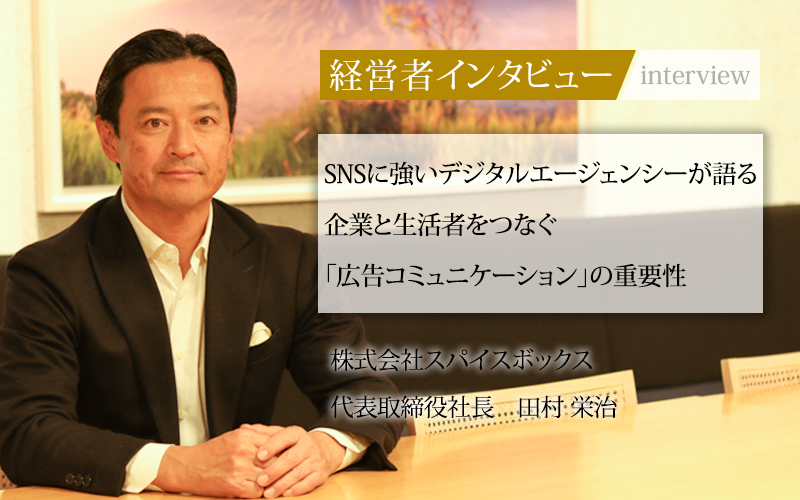 2003年に設立された株式会社スパイスボックス。SNSを中心としたデジタル領域からマスメディアまで、総合的な広告・コンテンツ制作とマーケティングを手がける企業だ。代表取締役社長の田村栄治氏に、企業の強みや広告の成功例、今後の展望についてうかがった。