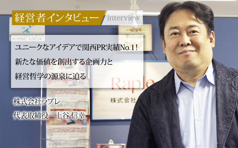 株式会社ラプレは、大阪を中心に企業のPRや広報支援を行う会社だ。代表取締役の上谷信幸氏が、大学時代に立ち上げたイベントサークルを関西最大規模にまで成長させた経験を活かし、2002年に創業した。