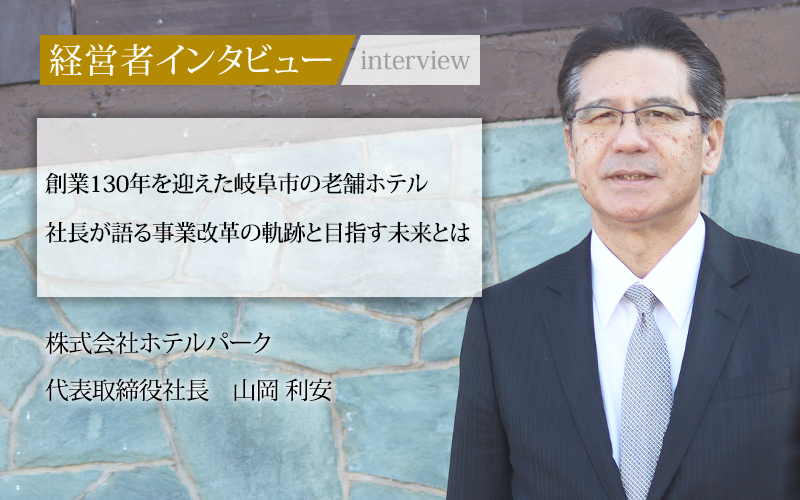 山岡利安/1963年岐阜県生まれ、獨協大学卒業。米カリフォルニア州立大学に留学後、熱海大野屋で修業。1991年にホテルパーク入社、2005年代表取締役社長に就任、現在に至る。公職として岐阜県旅館ホテル生活衛生同業組合理事長、岐阜県観光連盟副会長を務める。