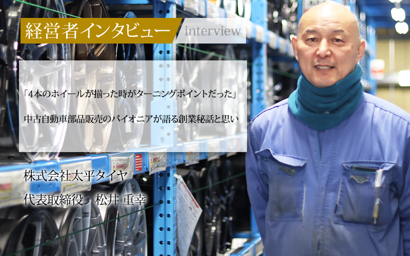 愛知県周辺に住む車好きの方ならば、株式会社太平タイヤの名前を一度は聞いたことがあるだろう。同社は1985年、中古自動車部品の販売買取専門店のパイオニアとして誕生した。安定した品質と品揃えの豊富さで、過去にはYahoo!の年間ベストストアを連続受賞している。代表取締役の松井重幸氏に、創業秘話や同社の強み、今後の展望を聞いた。