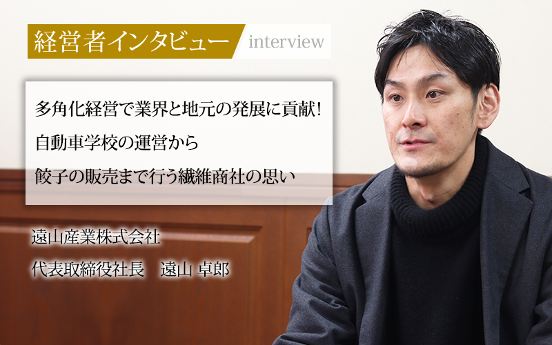 ファストファッションの台頭により、国内市場が減少の一途をたどっている繊維業界。そんな中、繊維事業を中心に運転免許事業や食品事業など多角化経営を行っているのが、遠山産業株式会社だ。幅広く事業を展開する同社が目指す姿や、繊維業界に対する思いなどについて、代表取締役社長の遠山卓郎氏にうかがった。