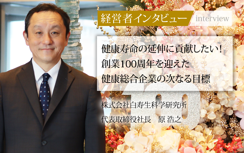 原浩之/1971年東京都出身。1994年、慶應義塾大学経済学部卒業後、株式会社あさひ銀行(現:株式会社りそな銀行)に入社。1998年、株式会社白寿生科学研究所に入社し、2000年に取締役、2003年に営業本部長、2015年に副社長を経て、2020年に代表取締役社長に就任。Hakuju Hall支配人、一般社団法人日本ホームヘルス機器協会の副会長、早稲田大学総合研究機構グローバル科学知融合研究所の招聘研究員を兼任。