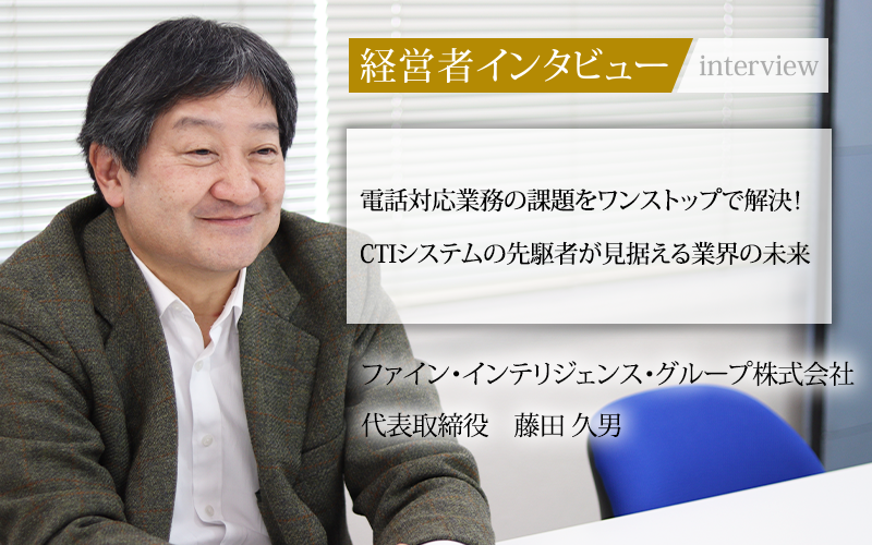 ファイン・インテリジェンス・グループ株式会社は、20年以上にわたってCTI事業を展開してきた企業だ。起業の経緯や、サービスを提供する上で意識していること、自立型の組織を目指した社内構造改革などについて、代表取締役の藤田久男氏にうかがった。