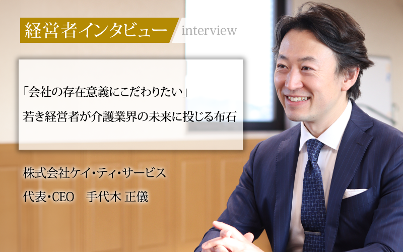 訪問ケアを中心に介護事業を手がける株式会社ケイ・ティ・サービスの代表・CEOである手代木正儀氏は、あえて売上目標を設定せず、それぞれの現場に裁量を与えることで、全体として質の高い介護サービスを展開することを重視している。手代木氏が何を意識して会社経営に取り組んでいるのか、その方針と将来への展望をうかがった。