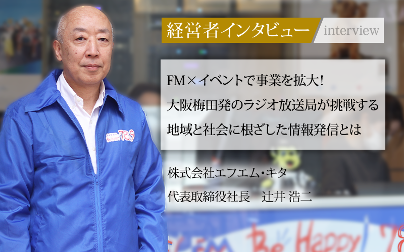 1997年の開局以来、大阪の情報発信拠点の役割を担う株式会社エフエム・キタ。同社は「イマドキのオトナ」に向けた洋楽7割、邦楽3割という明確な選曲と、地域に根差した情報発信で着実にリスナーを獲得してきた。放送事業に加え、イベント企画や地域の賑わい創出にも貢献している。2025年からは社会課題に向き合う新番組をスタートさせた。より深いメッセージ性を持つ放送局を目指す同社の代表取締役社長、辻井浩二氏に話を聞いた。