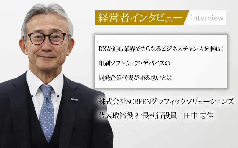 株式会社SCREENグラフィックソリューションズは、印刷関連のソフトウェアやデバイス(注:主にプロダクション用途のデジタル印刷機器)開発・販売を通じて、さまざまなソリューションを提供する企業だ。代表取締役・社長執行役員の田中志佳氏は、印刷は紙媒体だけに限らず、世界中にあふれていると語る。同社の事業や今後の展望、田中氏の印刷業界に対する思いをうかがった。