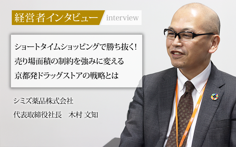 京都に根差し、地域住民の健康づくりを支えるシミズ薬品株式会社。京都府内にドラッグストア「ダックス」を展開する同社は、平均150坪という小回りの利く店舗規模を強みに、顧客が短時間で効率良く買い物できる独自の店舗設計を確立している。調剤薬局併設型ドラッグストアチェーンを運営するウエルシアグループの一員として、さらなる成長を目指す同社の代表取締役社長、木村文知氏に話を聞いた。