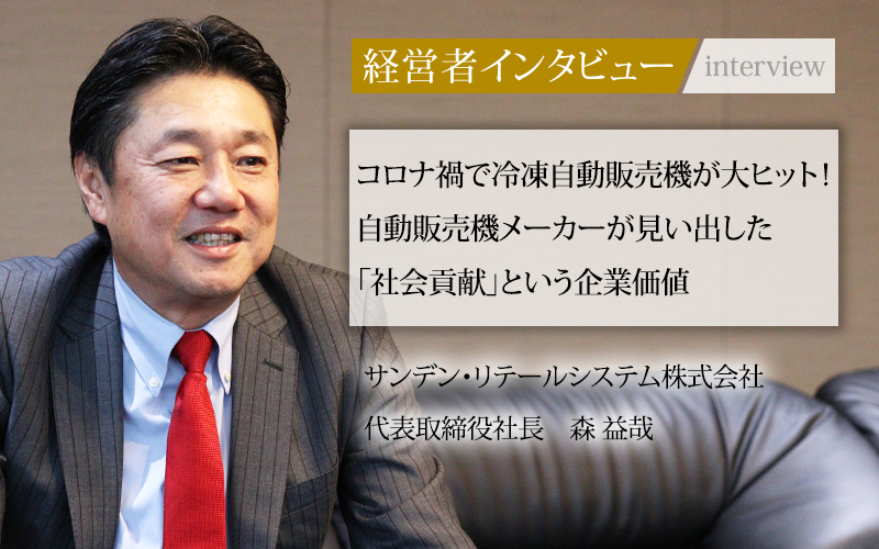 2015年に設立されたサンデン・リテールシステム株式会社。サンデンホールディングス株式会社(現・サンデン株式会社)より、自動販売機、冷凍・冷蔵ショーケースの製造・販売など流通システム事業を分社する形で誕生した。現在は、冷凍・冷蔵の技術とグループの物流機能を活かし、倉庫やプレハブの一括管理サービスも展開中だ。代表取締役社長の森益哉氏に、就任の経緯や自販機業界の現在、新規事業についてうかがった。
