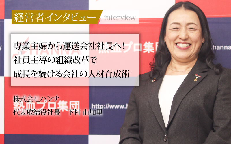 専業主婦から運送会社の社長へ。異色の経歴を持つ下村社長は、就任後の法整備から社員主導の健康経営、そして独自の研修制度の導入まで、着実に組織の土台を築き、成長を牽引してきた。自社の社員は、たとえ独立しても同じ志を持つ仲間だと語る下村社長の言葉には、人と人とのつながりを重んじる経営哲学が貫かれている。社員一人ひとりの成長を促し、主体性を引き出すことで、変化の時代に対応できる企業を目指す株式会社ハンナ。その人材育成術と組織づくりの今後に注目したい。