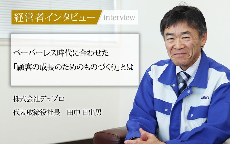 田中日出男/1964年大阪府生まれ。1987年、明治大学卒業後、株式会社デュプロに入社。開発本部本部長、常務取締役などを経て、2022年、代表取締役社長に就任。