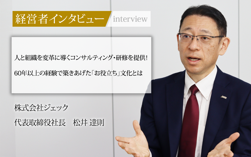 社会が目まぐるしく変化し、ビジネスにおいて柔軟性や創造性が求められる今、人と組織の変革は多くの企業が課題とするところだろう。1964年の創業以来、人材開発と組織開発に取り組み続けている株式会社ジェックの代表取締役社長である松井達則氏は、人と組織の価値観を変える取り組みが重要であると語る。