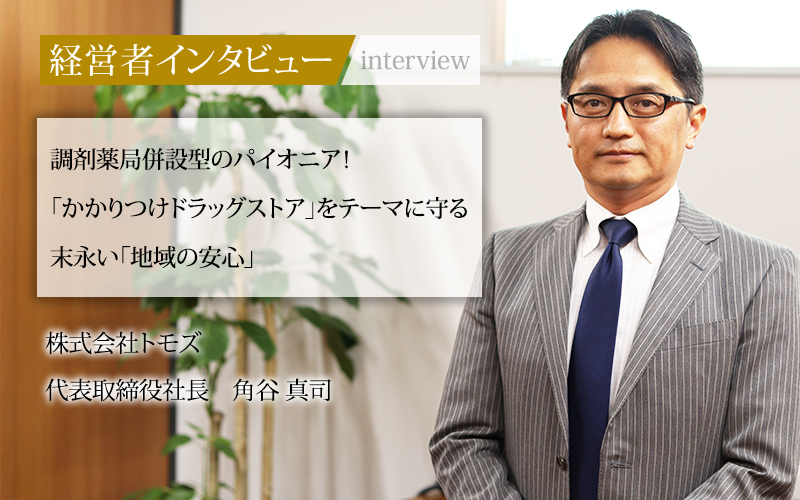 住友商事が100%出資し、グループ会社として1993年に設立された株式会社トモズ。調剤薬局を併設したドラッグストアとして、首都圏を中心に250店舗以上を展開する会社だ。現在は「オンライン服薬指導」などのWeb事業を含めて、幅広い領域の医療・美容サービスを提供している。代表取締役社長の角谷真司氏に、就任の経緯や企業の強み、今後の展望についてうかがった。