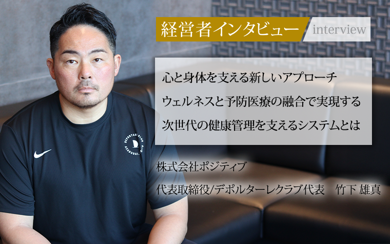 フィットネス業界は、健康志向の高まりとともに多様化し、パーソナルトレーニングやウェルネスサービスが注目を集めている。そんな中、多くの芸能人やスポーツ選手が信頼を置く会員制パーソナルジム「デポルターレクラブ」を運営するのが株式会社ポジティブだ。その代表取締役である竹下雄真氏に、これまでの経歴や今後の展望をうかがった。