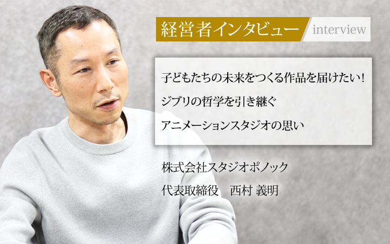 自身の価値観を変えたエピソードや、アニメーションスタジオ立ち上げの経緯などについて、代表取締役の西村氏にうかがった。