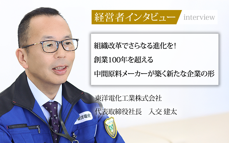 入社時から現状維持を良しとする社内文化に課題を感じ、組織改革をけん引してきた入交社長。創業から100年以上続く技術を継承し、さらに組織力が向上した同社は、今後さらなる成長を遂げることだろう。東洋電化工業株式会社は、高い技術力と顧客のニーズを瞬時に汲み取る対応力で、ものづくりの現場を支えていく。