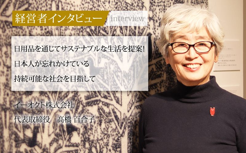 サステナブルをテーマに、環境に優しい日用品を取り扱っているイーオクト株式会社。同社の代表取締役である髙橋百合子氏は、長い間主婦として過ごしたのちに、2回の起業を経て同社を立ち上げた異色の経歴を持つ。