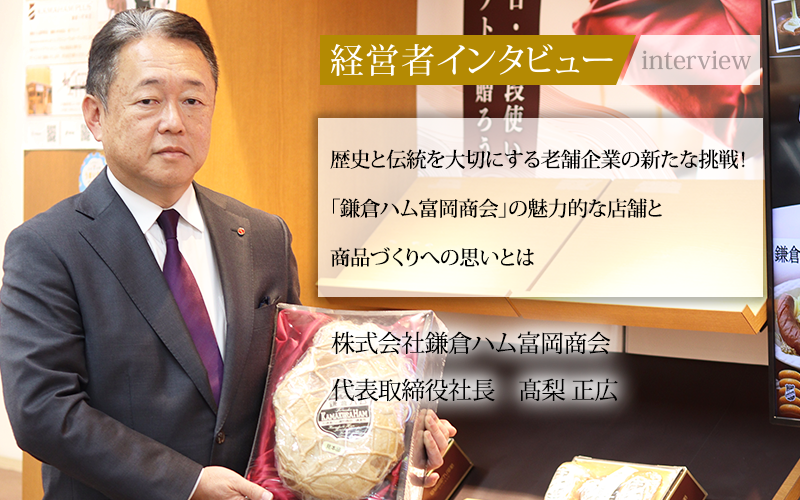 株式会社鎌倉ハム富岡商会は、1900年の創業以来、歴史と伝統を守りながら、主力製品である「伝統の熟成布巻きロースハム」「熟成ロースハム」をはじめとした各種ハム・ソーセージの製造・販売を続ける老舗企業だ。1993年には日本ハムグループの一員となり、2024年には「伝統と現代の融合」をコンセプトに、鎌倉小町本店をリニューアルして「KAMAHAM PLUS+」をオープン。顧客のニーズや流行に対応した新たな価値や体験を発信している。同社の代表取締役社長である髙梨正広氏に、これまでの経緯や今後の展望などについてお話をうかがった。